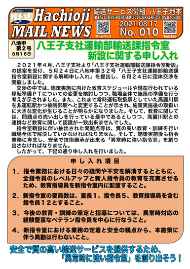 私たち八王子地本が申し入れた団体交渉の一覧です。